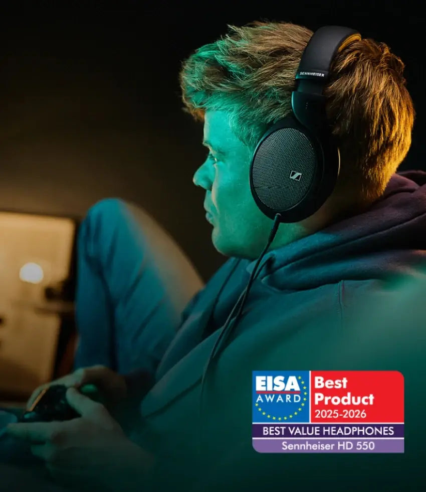 Ton casque ouvert polyvalent pour les jeux et la musique. Le HD 550 est conçu pour les joueurs qui veulent une réponse étendue des basses et des aigus avec une précision sans effort. Les basses sont profondes et lourdes, combinées à des aigus naturels et aérés, tout en bénéficiant d'une construction ultra légère de seulement 237 g pour des sessions sans fatigue. Grâce à sa conception à dos ouvert, à sa scène sonore étendue et à son imagerie détaillée, chaque pas subtil de l'ennemi ou chaque détail du monde ambiant est restitué exactement comme prévu. Le HD 550 est réglé pour offrir un son riche et percutant sans sacrifier la clarté - parfait pour les joueurs prêts à élever leur configuration.